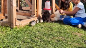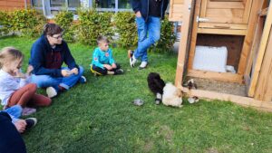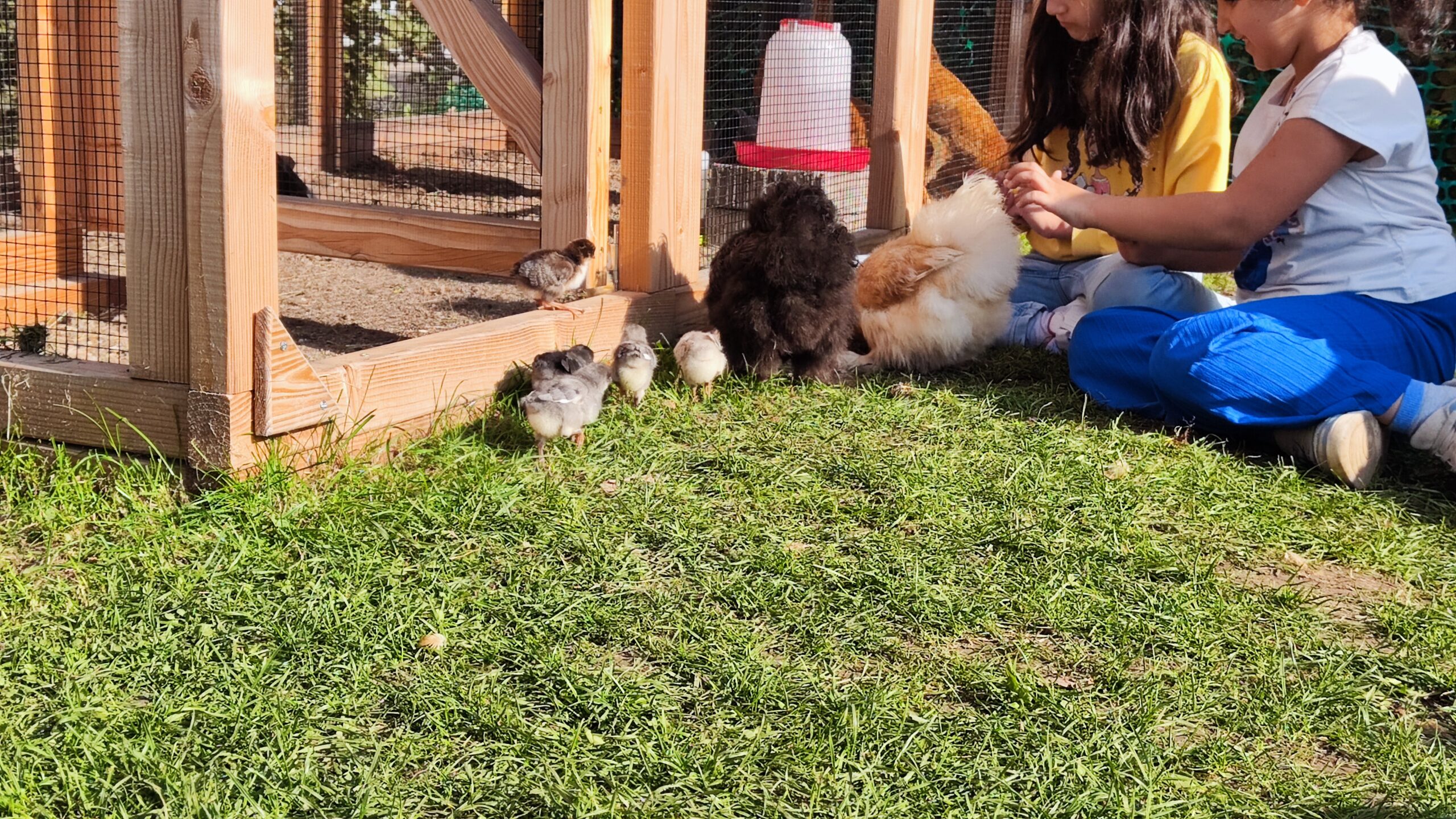 02.10.2025 Von vielen neugierigen Blicken begleitet darf die große Hühnerfamilie heute bei tollem Wetter aus dem Hühnerhaus.