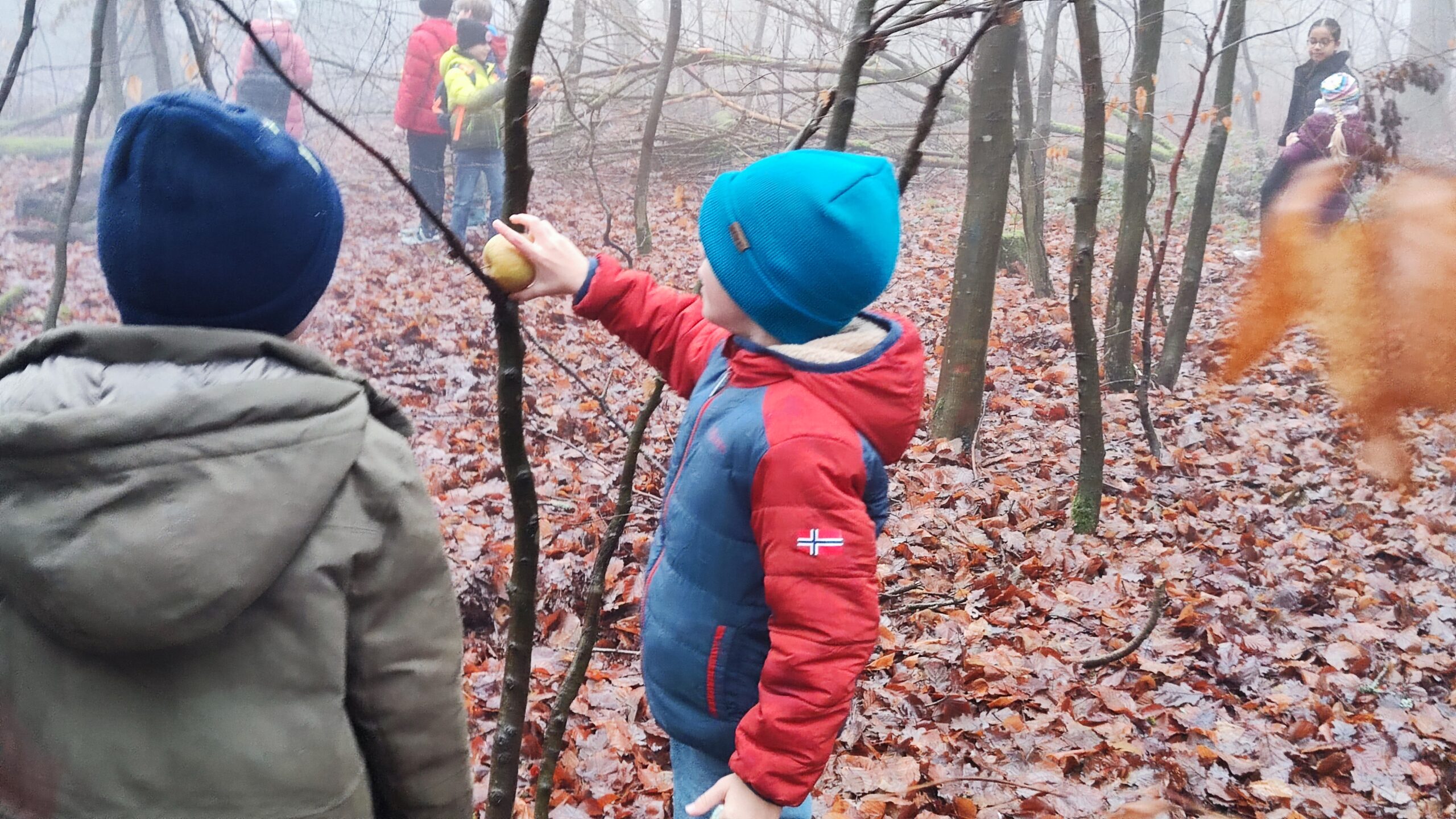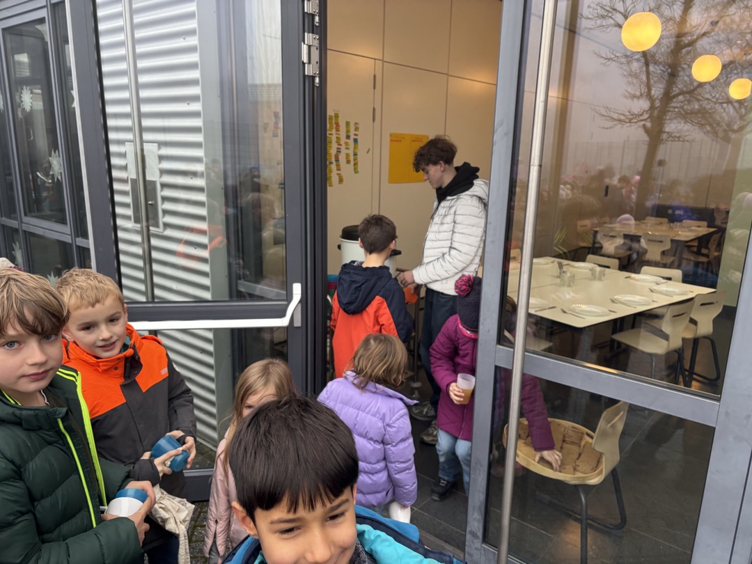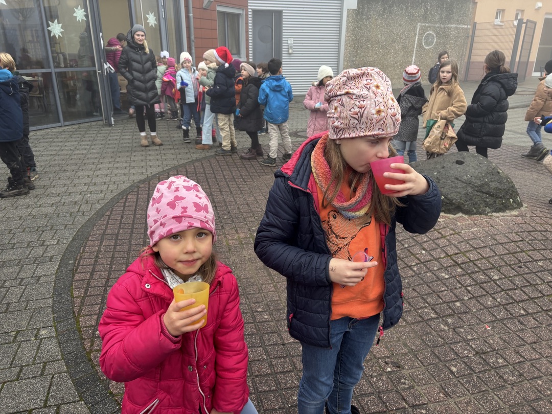 15.12.2025 Heute fand der Adventskreis nicht wie gewohnt statt. Eine gemeinsame Aktion gen Ende des Jahres zog die Kinder in den Wald. In Absprache mit der Försterin werden Weihnachtsbäume für die Tiere geschmückt. Während der 3. und 4. Stunde verzieren Groß und Klein die Bäume mit essbarem Schmuck für die Tiere. Gemeinsam bestaunen alle die neuen Apfel- und Karottenbäume🥕🍎. Zum Abschluss gab es noch für jedes Kind ein Keks und warmen Apfelsaft.🍪